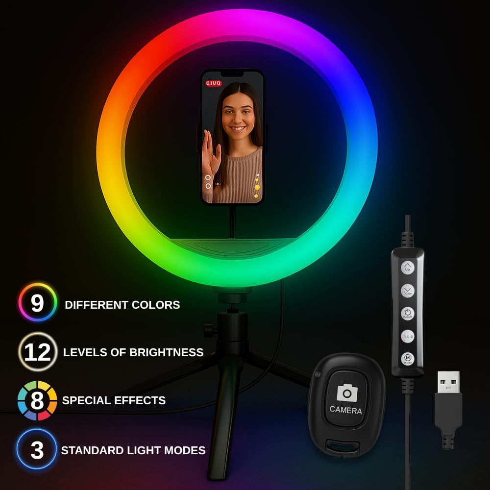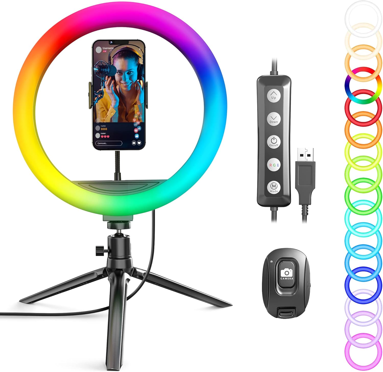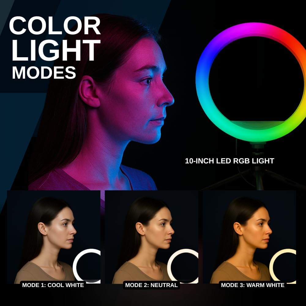 10" RGB Color Changing LED Ring Light with Tabletop Tripod