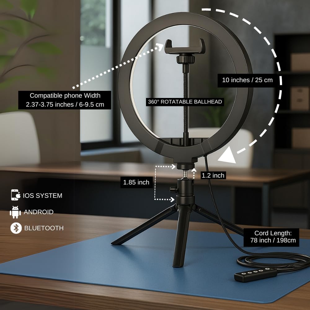 USB power and remote shutter: Ring light provides a lightweight, powerful and convenient lighting solution that can be charged using USB, wall outlet or PC port, and has a remote shutter function for image clarity and capturing moments