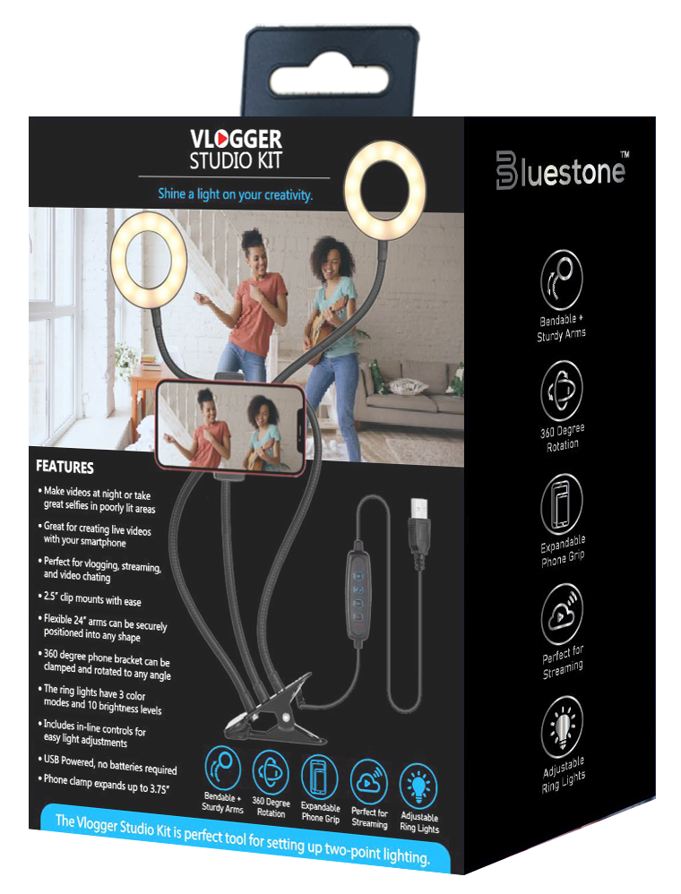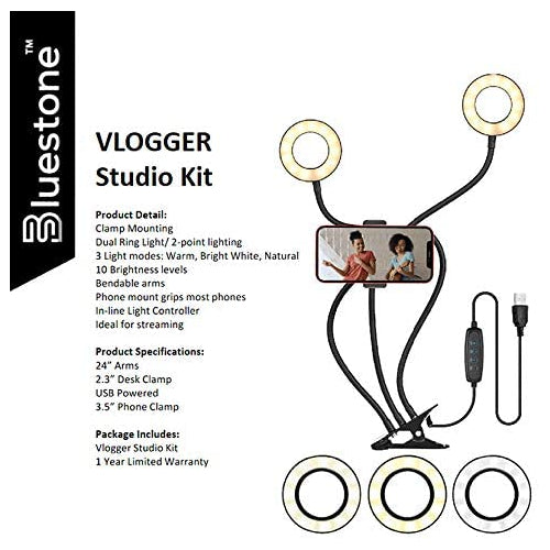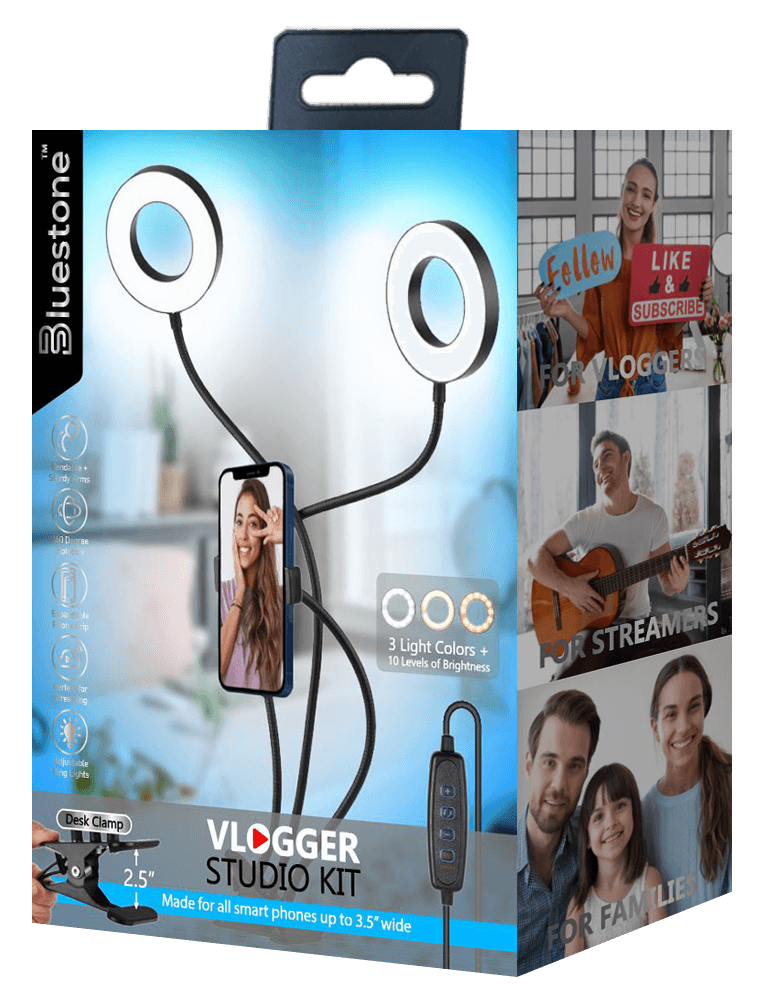 - Kit de vlogging en streaming à double anneau lumineux Bluestone avec support de téléphone
