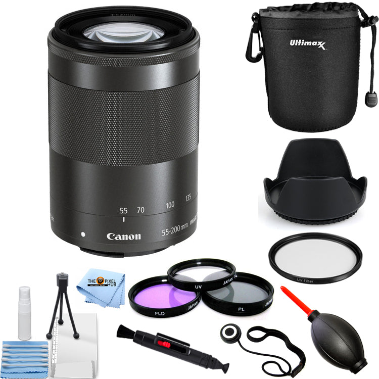 Canon EF-M 55-200mm f/4.5-6.3 IS STM Lens (Black) Bundle 2