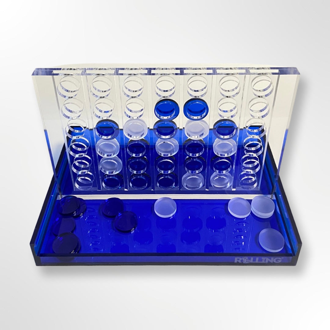 Cliquez pour agrandir Lucite Acrylique Quatre en Ligne Jeu Premium Connect 4 Plateau et Jetons (Bleu Clair)