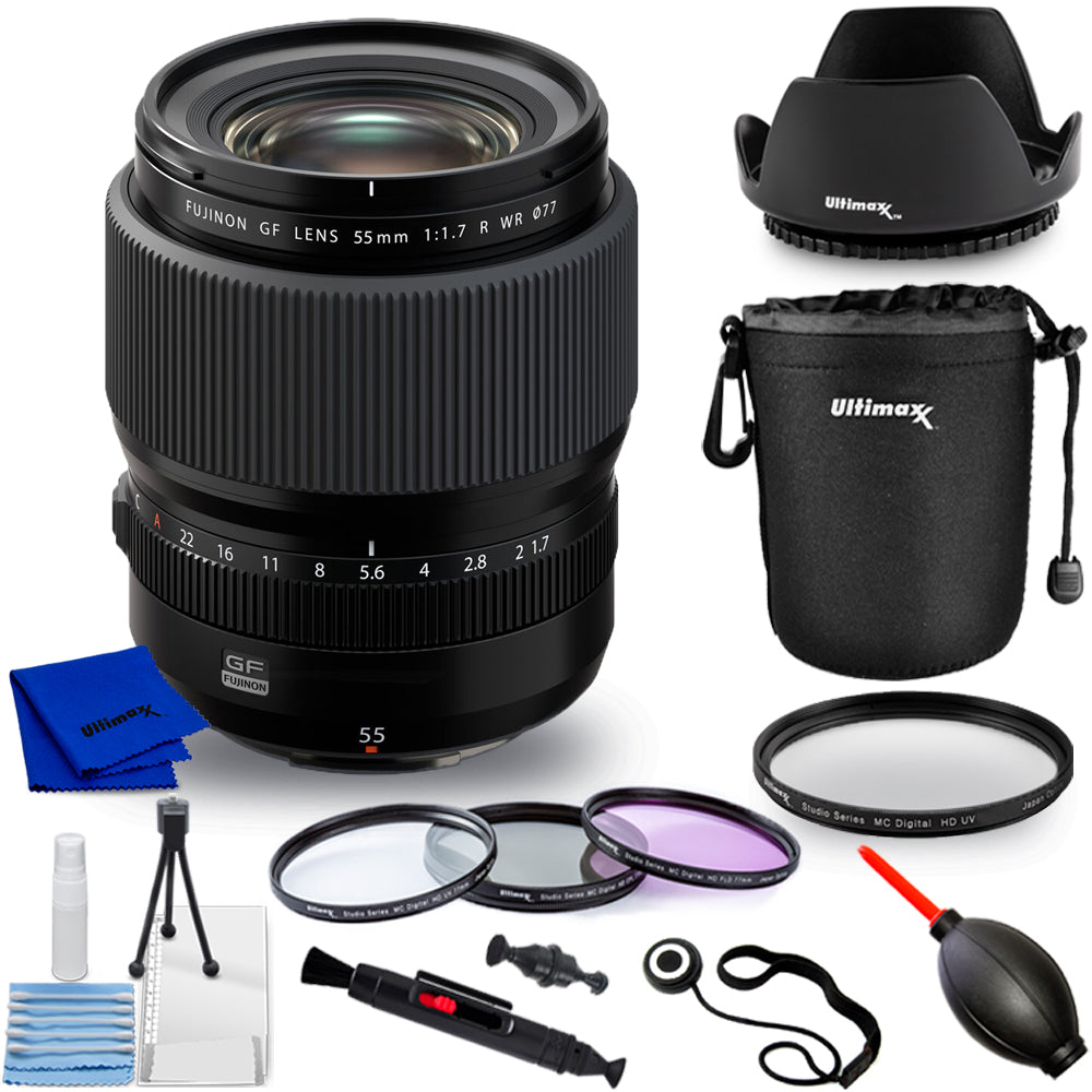 FUJIFILM GF 55mm f/1.7 R WR Lens 600023613 - 10PC Accessory Bundle