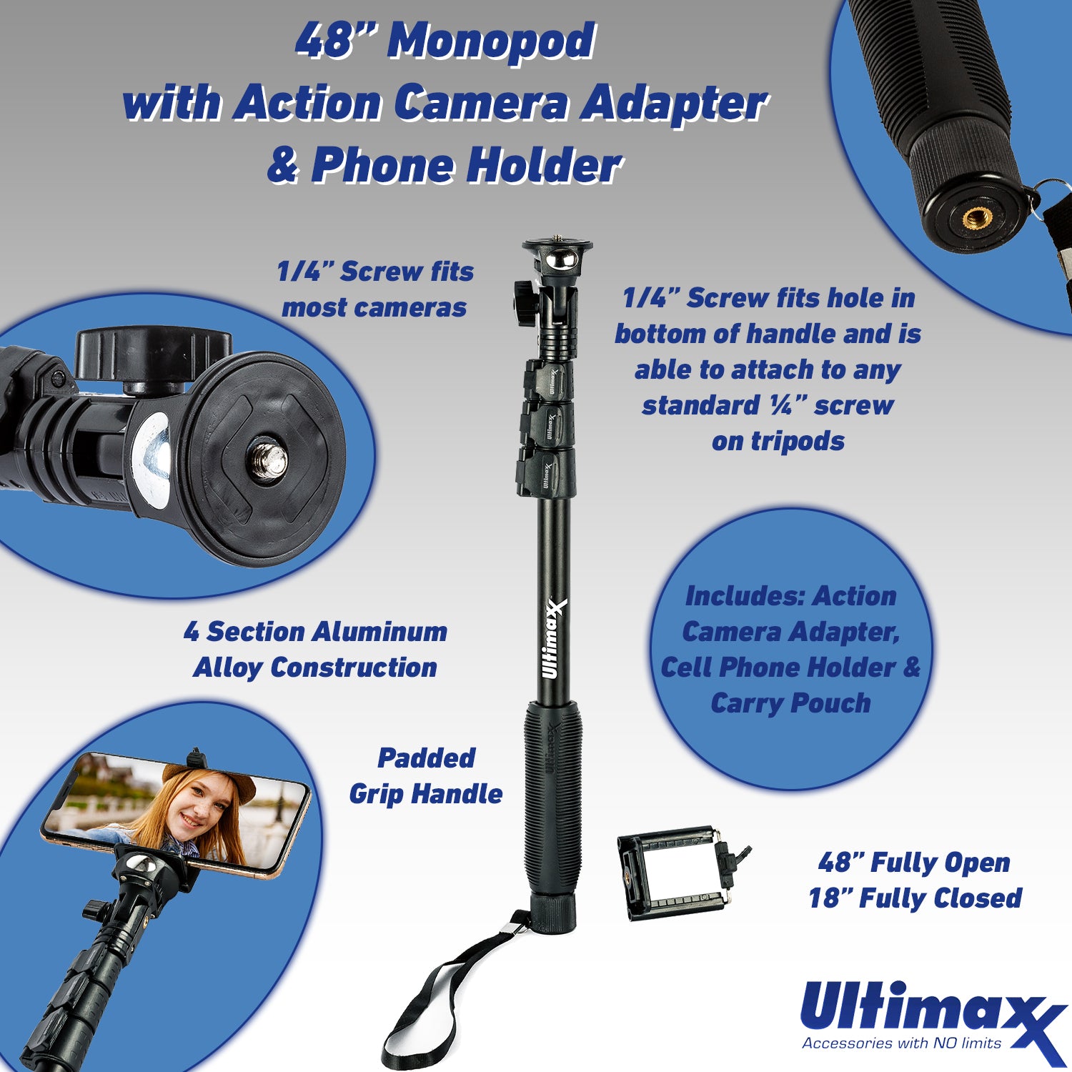 - Monopode / Selfie Stick Ultimaxx 48" avec adaptateur pour GoPro / Go-Pro / Caméra d'action