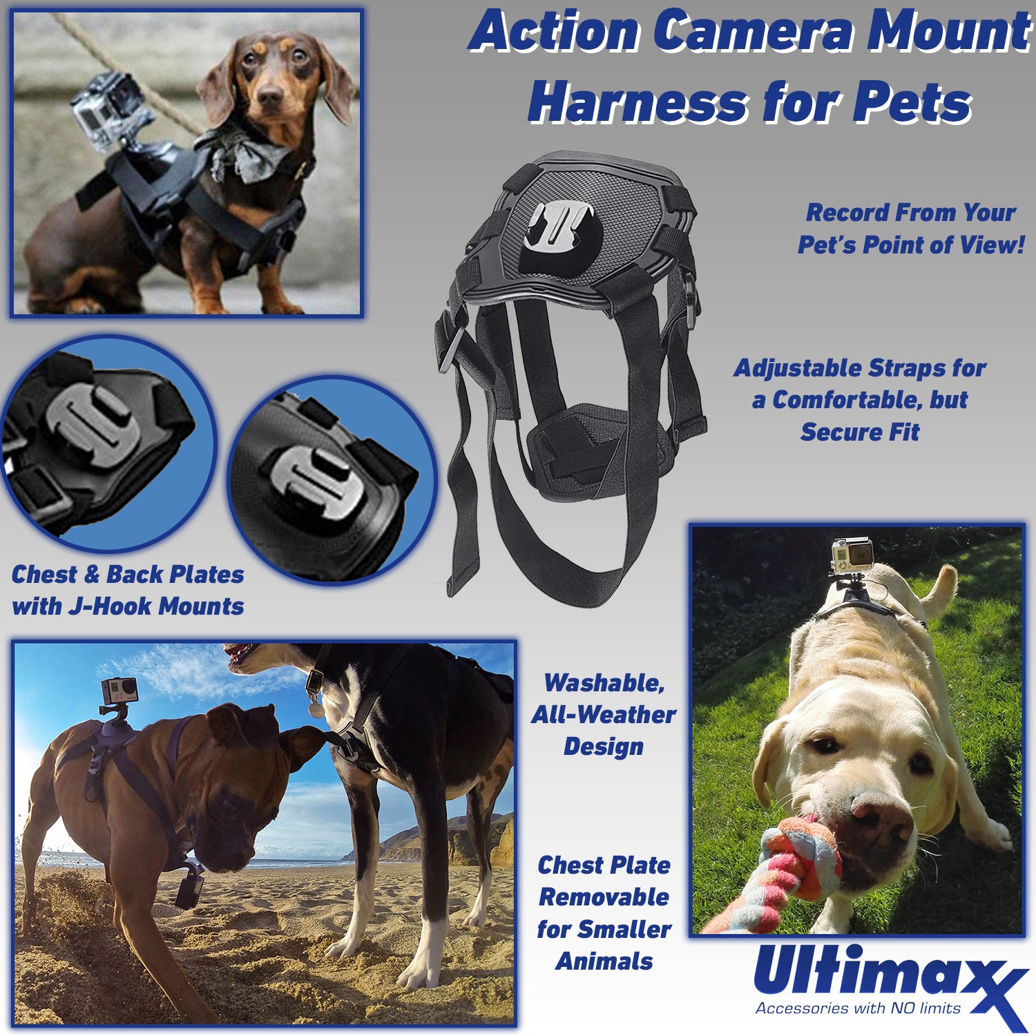 - ULTIMAXX Dog Fetch avec 2 crochets en J pour Go-Pro / GoPro / Caméra d'action