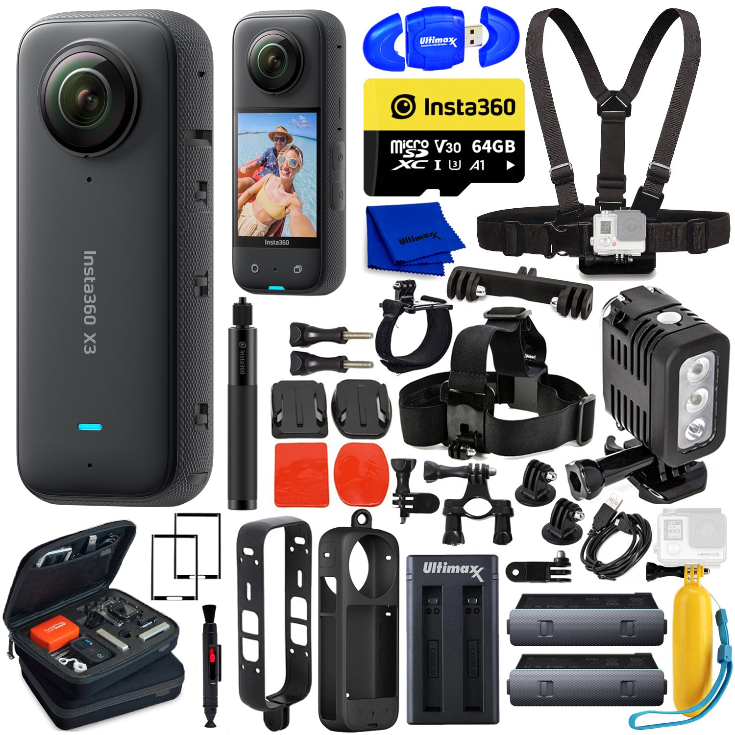 Caméra d'action à écran tactile étanche à 360° Insta360 X3 5,7 K - Lot de 24 PC 64 Go