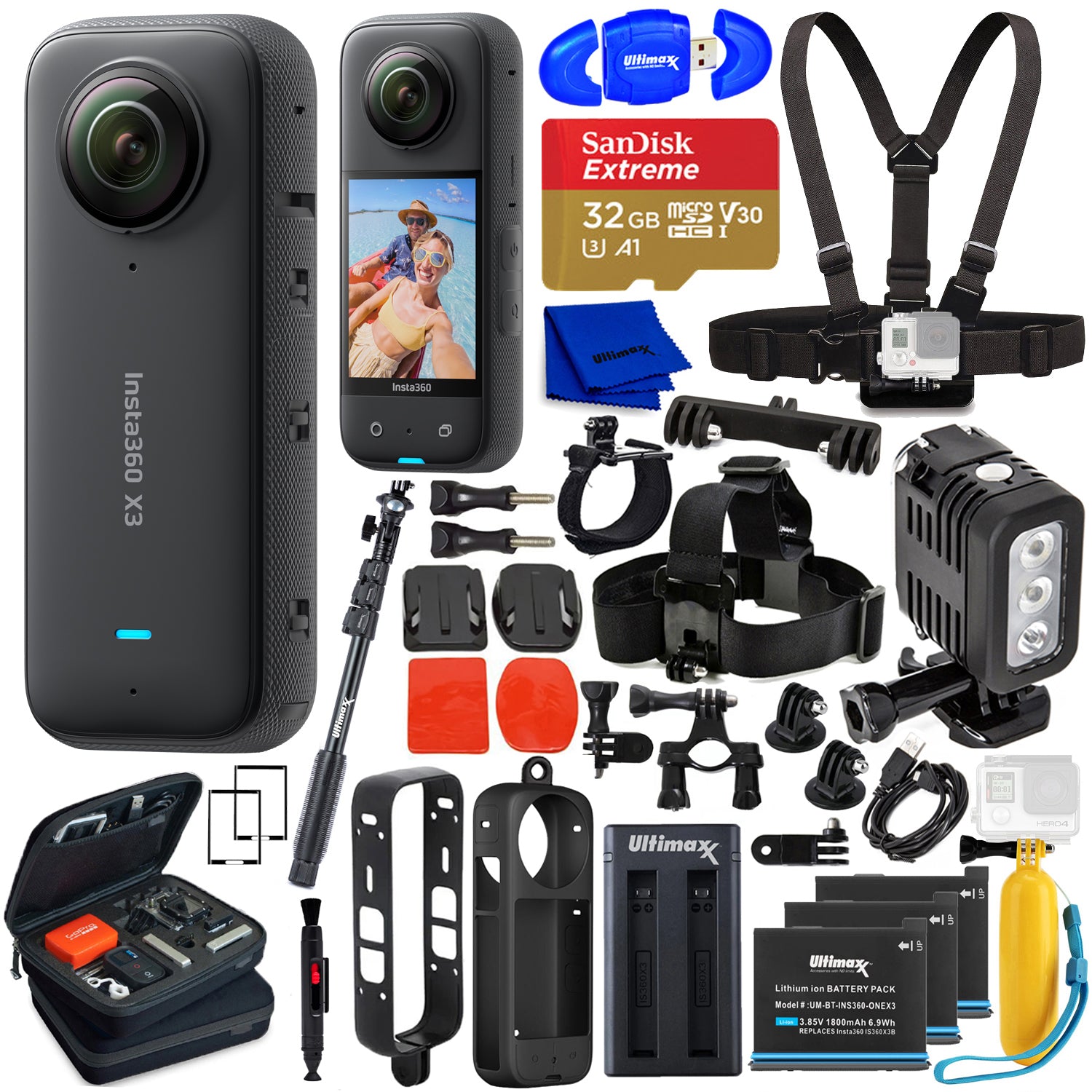 Caméra d'action à écran tactile étanche à 360° Insta360 X3 5,7 K - Lot de 25 PC 32 Go