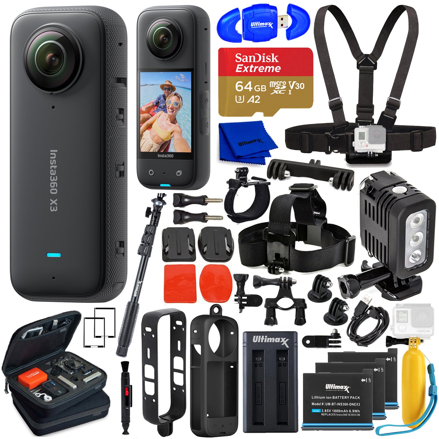 Avec un capteur 1/2" amélioré et un écran tactile plus grand, la caméra 360° Insta360 X3 est capable de capturer des vidéos haute définition à 360° et à objectif unique avec une caméra d'action portable. Le X3 offre une conception prête pour l'action avec un logiciel alimenté par l'IA. pour une approche intuitive de la création de contenu dynamique dans n'importe quel environnement. Sa conception robuste IPX8 est nativement étanche jusqu'à 33' et dispose d'une batterie rechargeable intégrée de 1 800 mAh pour une durée de prise de vue accrue.