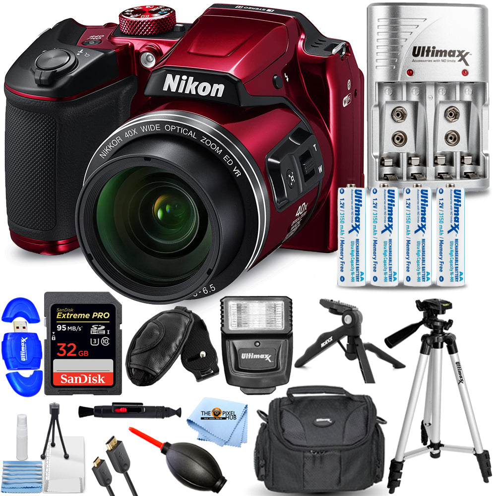 Nikon COOLPIX B500 Digital Camera (Red) - 15PC Accessory Bundle