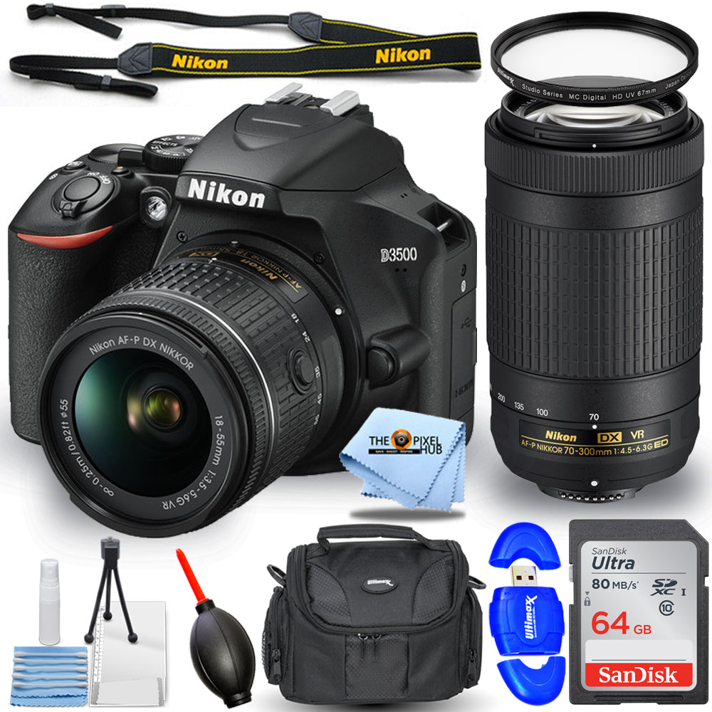 Appareil photo reflex numérique Nikon D3500 avec objectifs AF-P DX 18-55 mm + 70-300 mm VR, lot de 64 Go