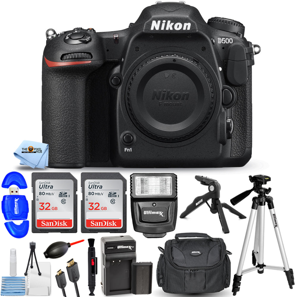 Appareil photo reflex numérique Nikon D500 (boîtier uniquement) + batterie supplémentaire + 64 Go + pack flash
