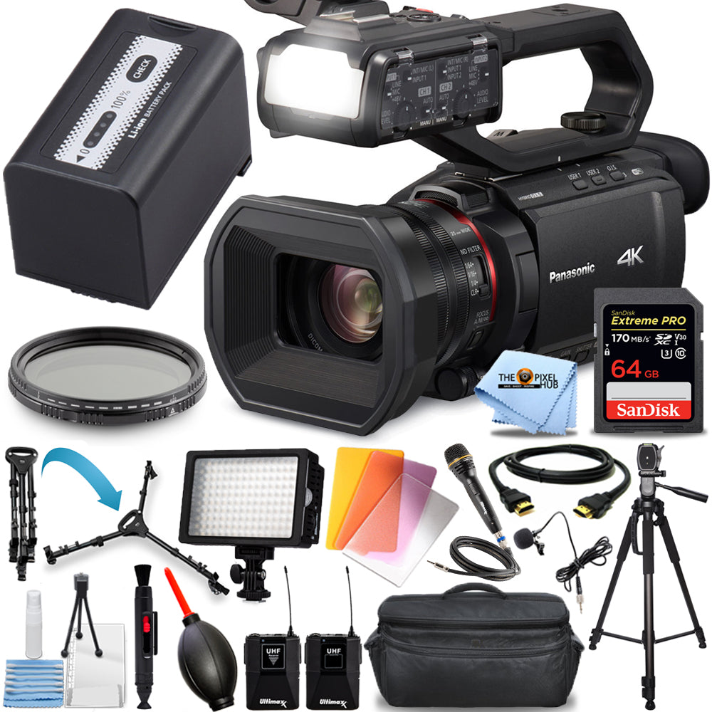 Caméscope Panasonic HC-X2000 UHD 4K 3G-SDI/HDMI Pro + 64 Go + ensemble système micro