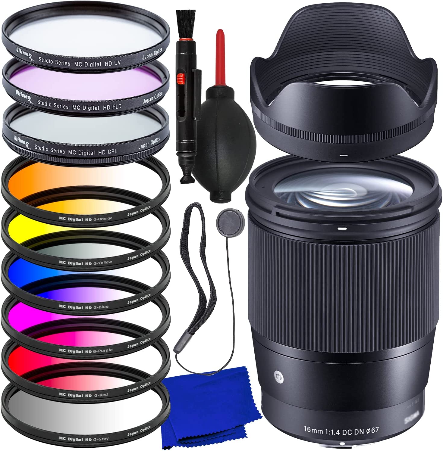 Sigma Objectif contemporain 16 mm f/1.4 DC DN pour Sony E 402965 – Kit d'accessoires 15 pièces