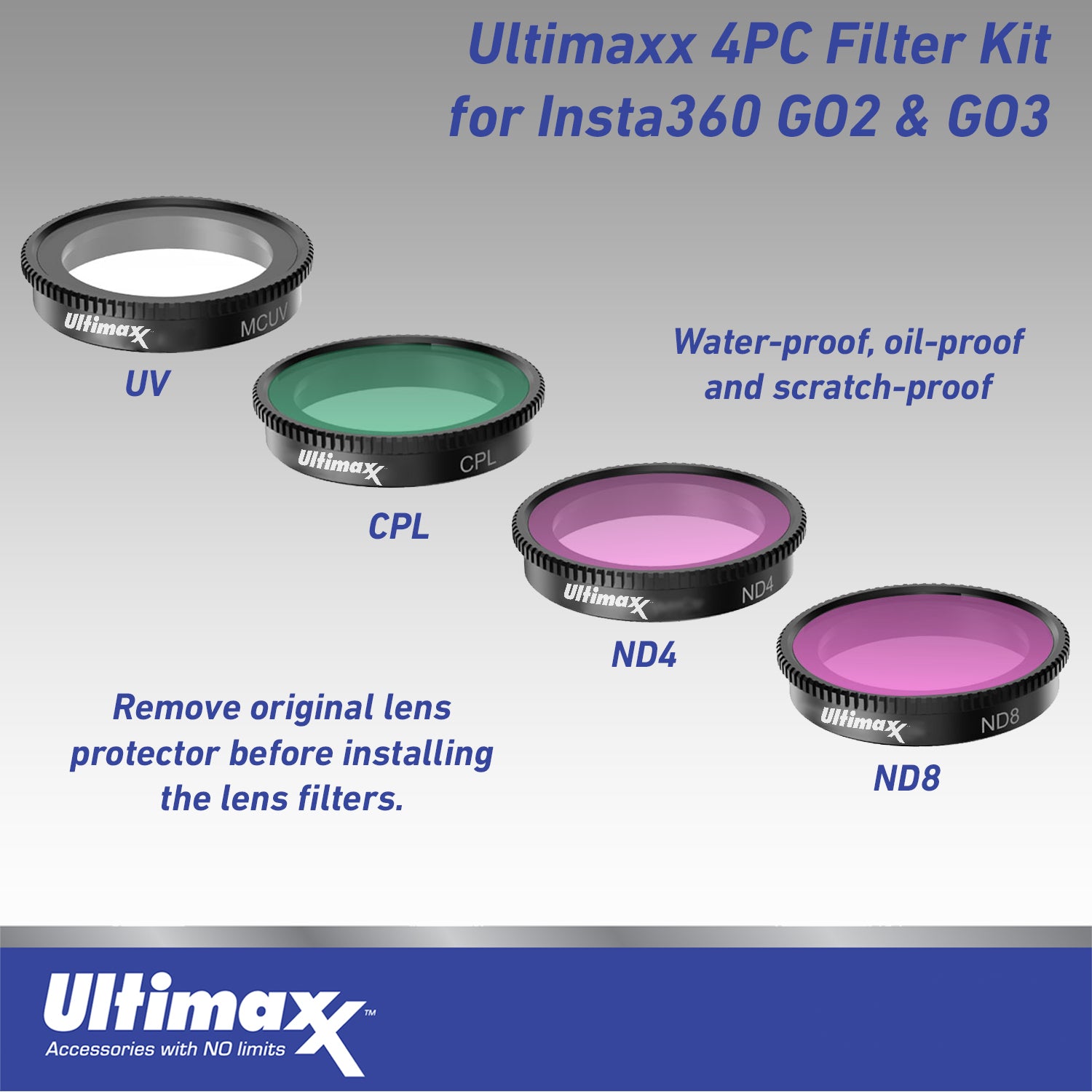 - Ultimaxx 4 Pack Filter Kit (UV / CPL / ND4 / ND8) for GO2 & GO3