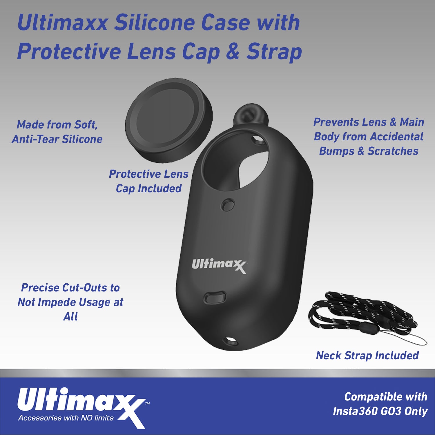 - Ultimaxx Protective Silicone Cover with Lens Cap & Strap for GO3 - Black