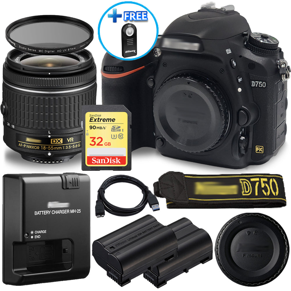 Nikon D750 DSLR Camera with 18-55mm VR Lens + EXT BATT + 32GB SD + UV Filter