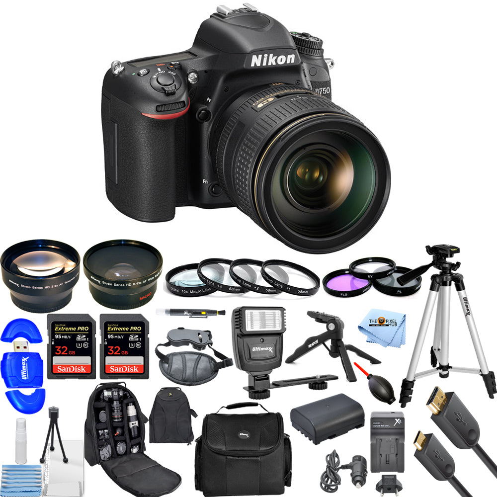 Nikon D750 DSLR with 24-120mm Lens Top Value Bundle + 64GB + Backpack + Flash