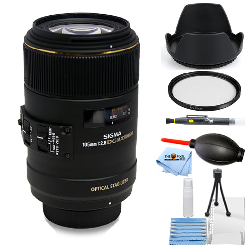 Sigma 105mm f/2.8 EX DG OS HSM Macro Lens for Canon EF - 7PC Accessory Bundle