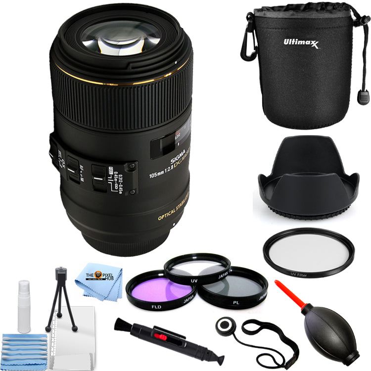 Sigma 105mm f/2.8 EX DG OS HSM Macro Lens for Canon EOS - 10PC Accessory Kit