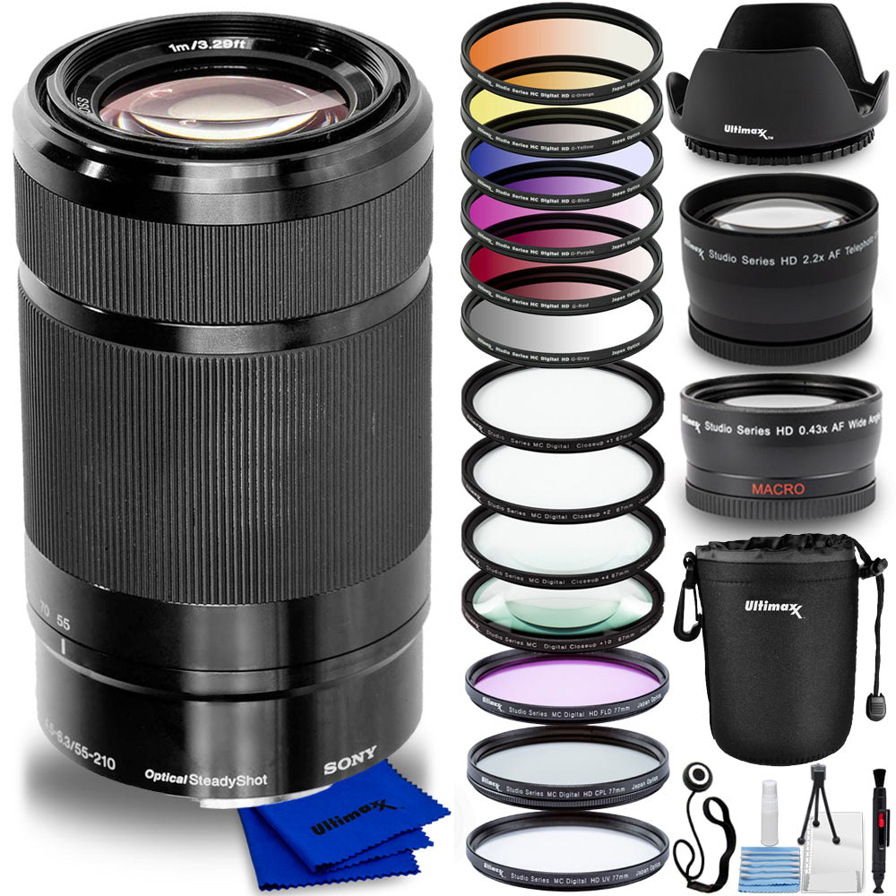 Sony E 55-210mm f/4.5-6.3 OSS E-Mount Lens + Filter Kits + Lens Pouch Bundle