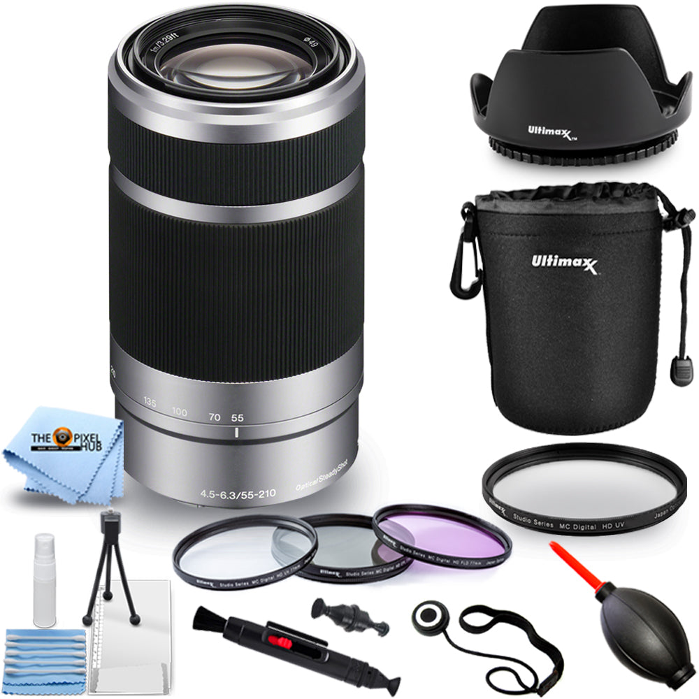 Sony E 55-210mm f/4.5-6.3 OSS Lens (Silver) SEL55210 + Filter Kit Bundle