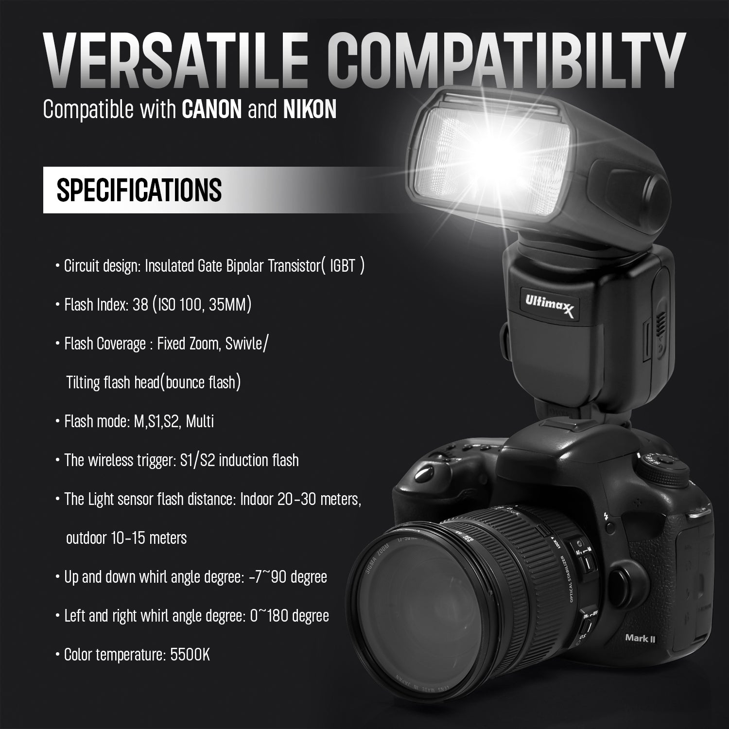 Universal Auto Flash w/ LCD Display by Ultimaxx, Slave Mode, Carry Pouch